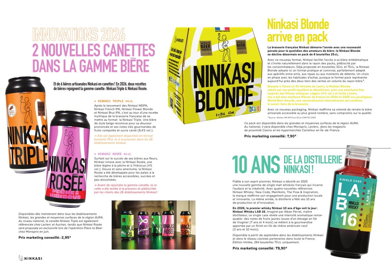 Avec ce nouveau format, Ninkasi facilite l'accès à sa bière emblématique et s'invite naturellement dans le rayon des packs, plébiscité par les consommateurs. Déjà proposée en bouteilles 33 cL et 75 cL, la Ninkasi Blonde adopte ici un format pratique et convivial, parfaitement adapté aux apéritifs entre amis, aux repas ou aux moments de détente. Un choix en phase avec les habitudes d'achat, puisque le format pack représente aujourd'hui près des deux tiers des ventes en volume du rayon bière *.